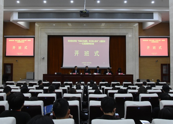 仪式第二项,李国强作开班动员讲话。首先,他介绍了红旗渠的发展历史及基本情况。红旗渠动工于1960年,勤劳勇敢的30万林州人民,苦战10个春秋,仅仅靠着一锤、一铲、两只手,在太行山悬崖峭壁上修成了全长1500公里的红旗渠。由此历练出“自力更生、艰苦创业、团结协作、无私奉献”的红旗渠精神。其次,李国强传达了省委高校工委、省教育厅主题教育第一巡回指导组的会议精神,充分肯定了我校之前开展的主题教育活动,要求学校务必拓展学习的深度和广度,务必坚持“请进来”和“走出去”相结合,务必即思即改。