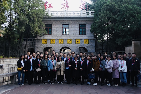 为庆祝中华人民共和国成立70周年,将“不忘初心、牢记使命”主题教育引向深入;为深入学习习近平新时代中国特色社会主义思想和贯彻党的十九大精神;为进一步加强我校党建工作,提升师生党员的党性修养,10月19日至20日,我校100名师生党员代表在党委书记李国强、副书记董学力、纪委书记李赞、工会主席张彪的带领下,奔赴红旗渠开展为期两天的“传承红色基因,牢记初心使命”主题教育活动。红旗渠干部学院魏来同志主持开班仪式。