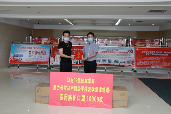 郑州财经学院08级校友常旺捐赠10000只口罩助力母校复学复课