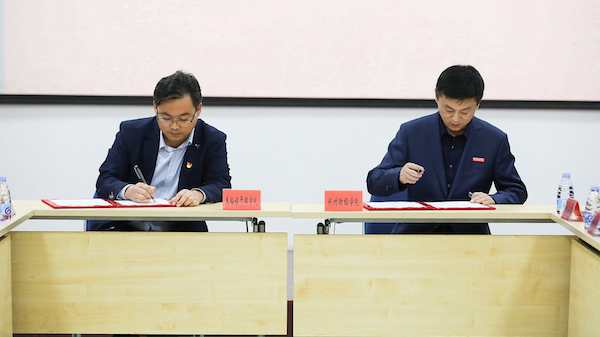 接着,我校党委副书记董学力代表郑州财经学院与焦裕禄干部学院党委委员、纪委书记孔存签署战略合作协议。