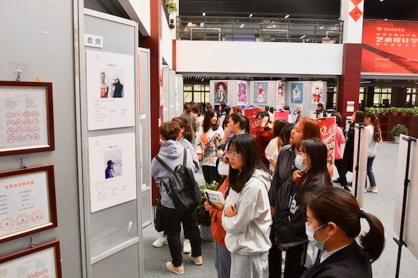 展览期间,校领导及师生纷纷前往图书馆二楼展厅参观数字造型艺术中心成果展。本次系列成果展开幕式的圆满举办,集中展现了我校师生对党的热爱之情,艺术设计学院师生将以更高的创作热情、更为严谨的艺术态度,创作出更多既有优秀传统文化底蕴,又能彰显时代精神的艺术作品。