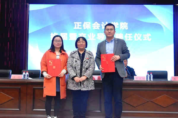 会上,校长于向英为正保会计学院新一届名誉院长和执行院长及2位产业导师颁发聘书。正保网中网软件有限公司总裁蔡理强任正保会计学院名誉院长,我校会计学院院长张学功任正保会计学院执行院长。正保远程教育运营服务中心总经理王丹、正保网中网软件有限公司大区总经理季金担任正保会计学院产业导师。