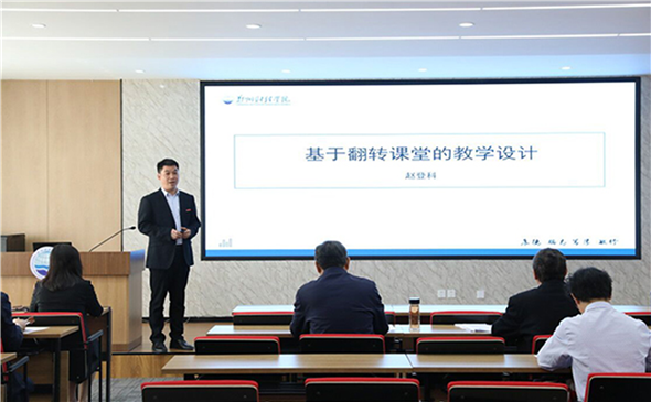 在名师展示环节,赵登科副教授“基于翻转课堂的教学设计”为主题,阐述了自己的教学理念,从课前预设、知识回顾、作业点评、新课导入、学生展示、深化理解、能力提升、课后延伸、总结归纳等环节进行了精彩展示,以及突出如何在教学设计中融入思政元素。温毓敏副教授从培养学生专业认知、教授学生学习方法、培养学生职业素养、树立学生职业信心四个目标入手,着重讲述了“3个三”教学设计模式,即:三个教学环节、三个教学目标、三个创新手段并初步演绎了自己的教学主张。