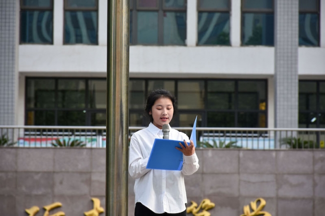 教育学院2019级小学教育4班刘士琪作为老团员代表向新团员传递了共青团精神,并诚挚邀请每一位新团员同拼搏奋进