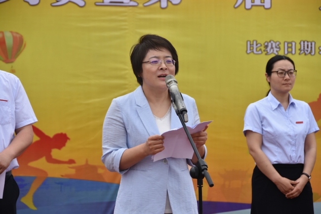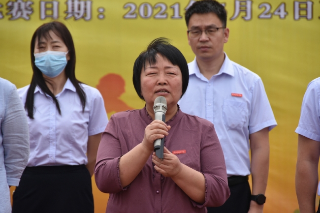 于向英宣布庆祝建党100周年阳光体育活动系列赛暨第一届“郑财杯”五人制足球比赛正式开始