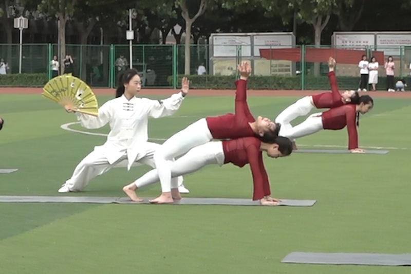 我啦啦操瑜伽、太极拳、体育舞蹈、武术运动队及精武社联合进行了汇报表演。