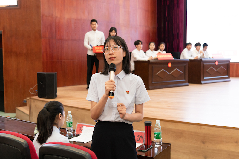 决赛现场分为“单兵突进”“兵团作战”“抢夺先机”三个环节,包括个人答题、团体答题、抢答题等多种题型,结合音频、视频等多种形式,考察选手对党史知识的理解和掌握程度。赛场上,选手们各显身手,相互配合,争分夺秒答题,各参赛队伍在赶超比拼中激烈角逐,热情满满。参赛选手们用扎实的理论基础、过硬的心理素质,展示了郑财学子斗志昂扬的精神风貌。