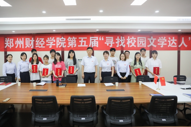 诗词歌赋颂党恩,挥毫泼墨书党情引导当代大学生厚植爱党爱国情怀,进一步坚定青年学子对党和国家的忠诚信念,党委宣传部开展了以“忆百年征程 书奋斗新篇章”为主题的第五届“寻找文学达人”活动,全校同学参与热情极高,纷纷激扬文字,征文比赛共收到300余稿件。6月15日下午,第五届“寻找文学达人”暨“忆百年征程 书奋斗新篇章”征文比赛颁奖典礼在行政楼A608会议室召开,校党委副书记董学力,党委宣传部部长杨建伟及宣传部指导老师,大学生记者团成员及获奖学生代表参加活动。活动由校报编辑部主任李晓培主持。