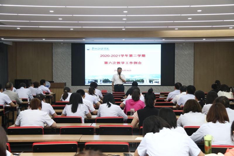 6月16日下午,我校在A楼第一学术报告厅召开2020-2021学年第二学期第六次教学工作例会。校长于向英、常务副校长李庆阳出席会议,教务处、教学质量监测与评估中心、督导办、学生处、团委、实验室管理处及各教学单位教学管理人员共110余人参加会议。会议由李庆阳主持。