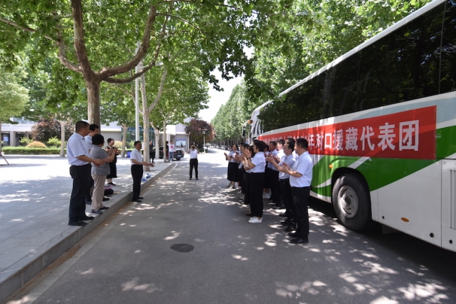 党史学习教育开展以来,郑州财经学院将“我为群众办实事”实践活动贯穿始终,推动办好一批实事。6月20日,由郑州财经学院一期、二期博士班20名成员代表组成的援藏代表团出发,跨越千里,赴对口支援学校——那曲职业技术学校开展援建交流。校领导李国强、于向英、牛钦民、李庆阳、张胜利、李赞为援藏代表团送行。