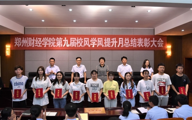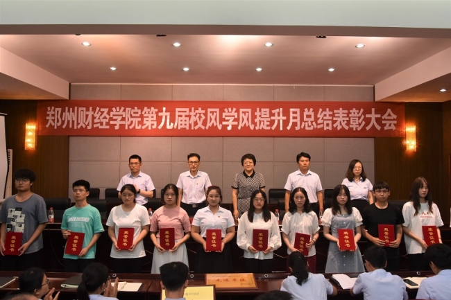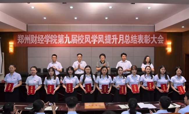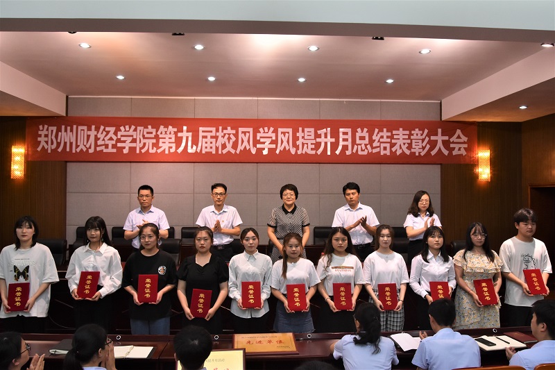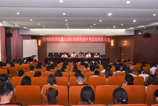 6月25日上午,郑州财经学院第九届校风学风提升月活动总结表彰大会在A楼第二学术报告厅召开。副校长陈静,校团委书记周二涛、学工部副部长吕洛乐、学生处副处长李坤,各二级学院党总支书记、副书记、团总支书记及全体辅导员、学生代表参加会议。大会由李坤主持。