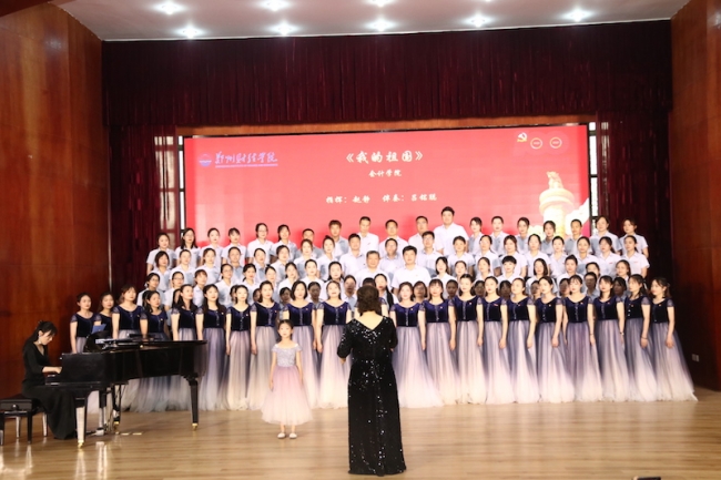 为庆祝中国共产党成立100周年,讴歌中国共产党的百年光辉历程,激励教职工不忘初心,牢记使命,传承红色基因,学习党的历史,落实立德树人根本任务,增强教职工凝聚力、向心力,推进学校本科教学合格评估工作有序进行,在校党委和校工会的共同组织下,6月25日下午,我校在图书馆学术报告厅举办了郑州财经学院“奋斗百年路 永远跟党走”庆祝建党100周年暨迎七一教职工合唱比赛。