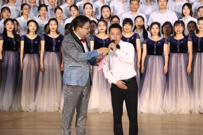 我校10个合唱团依次上台演唱,穿插了精心编排的朗诵、舞蹈、小提琴伴奏、童声领唱等丰富形式,用或沉稳庄严、或深情舒缓、或清脆刚健、或高亢激昂的演唱,将教职工对党和祖国深沉的爱表现得淋漓尽致,赢得了阵阵掌声,给现场观众留下了深刻的印象。