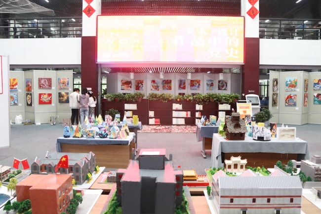 近日,郑州财经学院“致敬百年路,启航新征程”庆祝中国共产党成立100周年美术设计作品展在图书馆二楼开展。本次美术设计作品展由艺术设计学院主办,艺术设计学院师生发挥专业特长,紧扣建党百年主题进行创作共展出350余件作品,展出作品形式多样,包括国画、版画、油画沥粉画书法,涉及摄影艺术传统民居立体构成招贴设计海报设计手绘表现技法等课程及第二课堂艺术创作作品主题鲜明、特色突出、亮点纷呈、内涵丰富,承载了师生们的设计智慧和艺术才华,在全校范围内形成了向建党百年献礼的浓厚校园文化氛围。