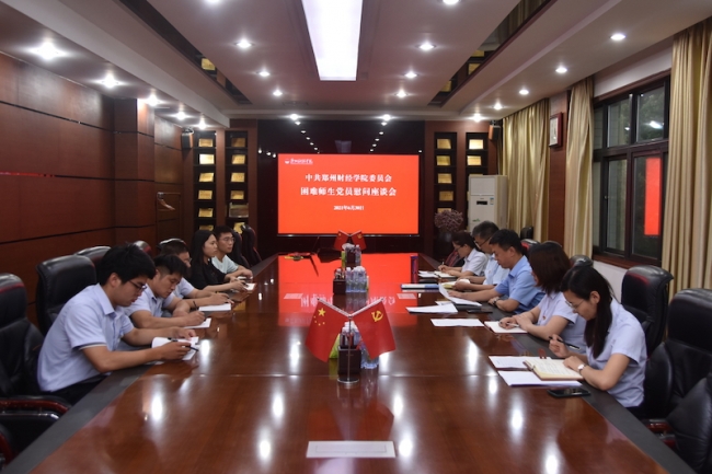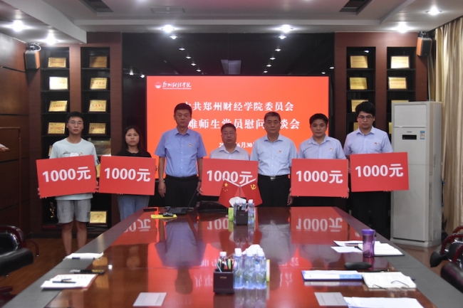 李国强发表讲话。提出四点希望:一各基层党组织在工作、生活上多帮助困难党员;二困难师生党员努力学习,认真工作,在郑州财经学院这个平台上越来越好;三是大家要时刻铭记自己党员身份,发挥党员先锋模范带头作用;四要坚定信心跟党走,坚信共同富裕是我们党坚定不移的目标,也是全国人民的共同愿望和追求坚守在工作一线,尽职尽责,做好本职工作学生党员要带头努力学习,为班级创造良好氛围,教师党员要勇担工作重担,为学校的发展做出自己的贡献。