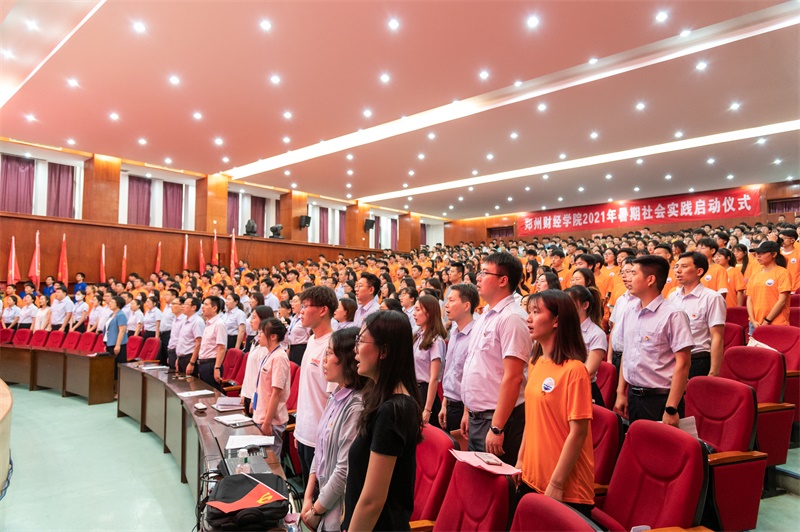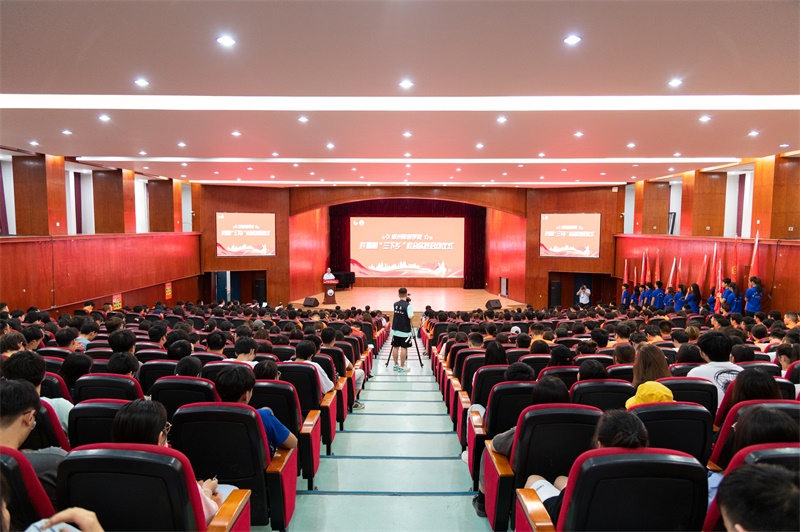 为贯彻落实习近平总书记关于青年工作的重要思想,引导和帮助广大青年学生上好与实践相结合的“大思政课”,在社会课堂中受教育、长才干、作贡献,在观察实践中学党史、强信念、跟党走,以实际行动庆祝中国共产党成立100周年,7月1日中午,我校在图书馆学术报告厅举行“永远跟党走 奋进新时代”2021暑期“三下乡”社会实践活动启动仪式。副校长陈静,教务处处长张顺利、学生处处长、校团委书记周二涛,各二级学院党总支书记、副书记、副院长、团总支书记以及各实践团队指导教师和学生代表共500余人参加启动仪式。仪式由校团委组织部部长余永明主持。