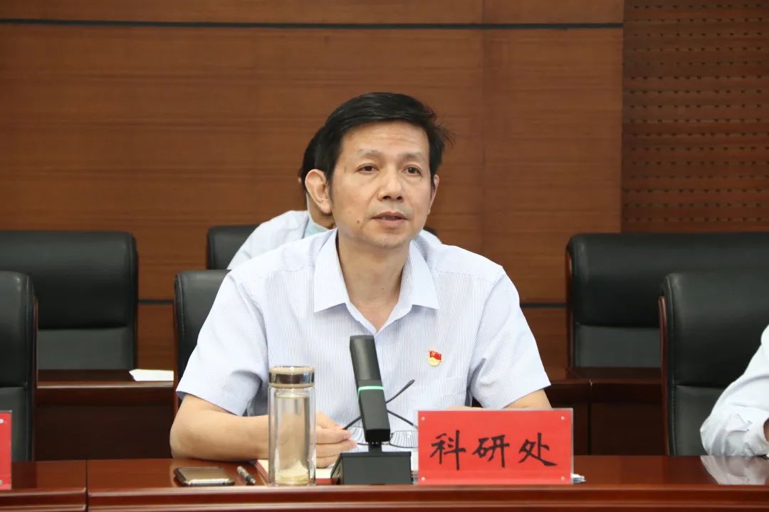 校地合作处处长陈明灿介绍2021年郑州市资政研究重点课题研究相关工作,要求二级学院主管院长高度重视、提前部署。