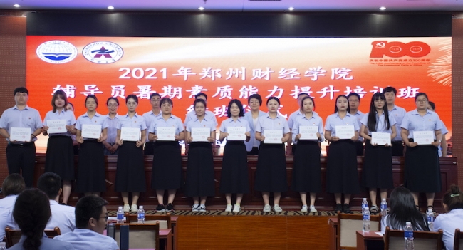 7月8日,郑州财经学院2021年辅导员暑期素质能力提升专题培训班圆满结班。副校长陈静,校团委书记周二涛、各二级学院党总支副书记,全体辅导员参加结班仪式。