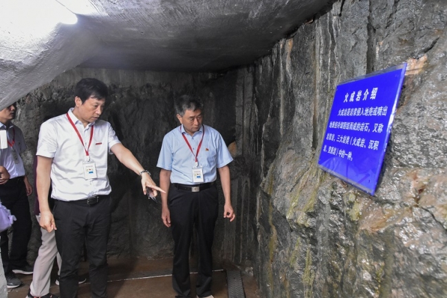 参训学员在左岸贴坡廊道进行实地参观
