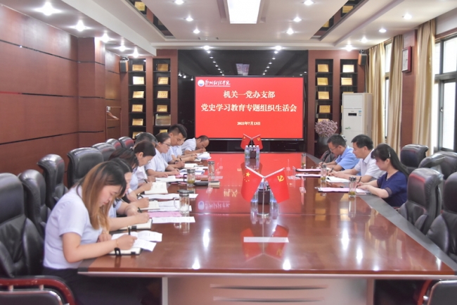 7月13日下午,省委高校工委党史学习教育巡回指导小组成员省教育厅二级巡视员刘林亚、河南中医药大学学工部副部长王晓艺、河南牧业经济学院纪委第二监察室主任李宏宇莅临参加我校机关一党办支部党史学习教育专题组织生活会,校党委书记李国强以普通党员身份参加会议,支部书记靳会贤主持会议。