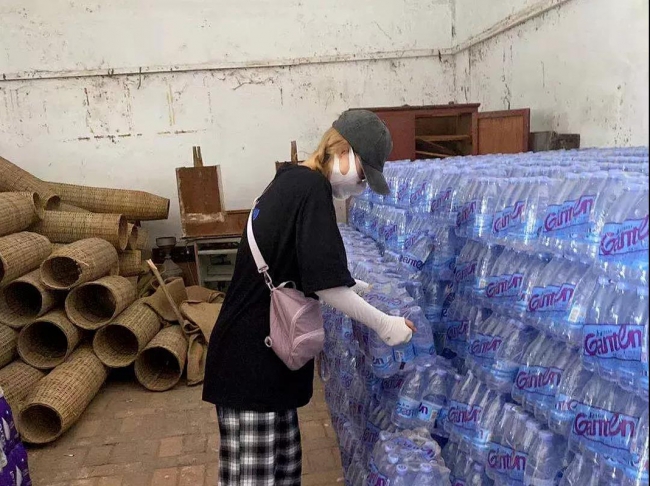 投入到志愿者活动中的还有来自2019级艺术设计学院视觉传达本科专业的尹思维同学。近日,由于郑州雨情严重,她的家乡周口市扶沟县是泄洪区,贾鲁河作为泄洪河道从扶沟县东南穿城而过,临近17个乡镇村民约26万人全部提前撤离到县城内各中小学内。22日晚,得知这些村民安置点急需志愿者搬运救灾物资,她便第一时间报了名,23日一早到达扶沟县江南实验小学安置点,为在这里的4300多名村民发放物资。