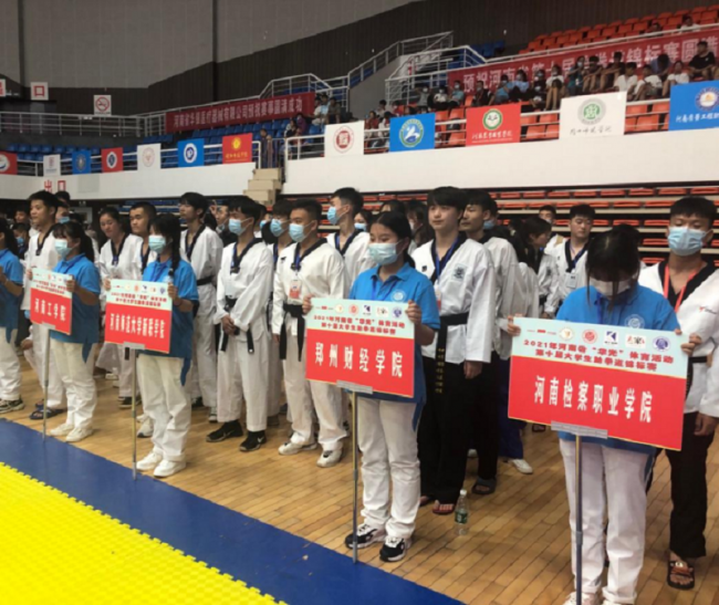 7月16日至20日,由河南省教育厅主办,河南省学生体育总会跆拳道协会执行,鹤壁职业技术学院承办的2021年河南省“华光”体育活动第十届大学生跆拳道锦标赛在鹤壁市千鹤之舞体育馆举行。此次大赛共有来自全省45所高校的600余名运动员参加是省内大学生跆拳道最高级别的赛事。本次比赛分别设置了专科甲组、本科甲组、本科乙组、本科丙组4大组别,设品势、竞技、击破、跆拳舞和对练5大项目共37个奖项。