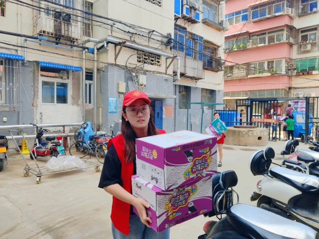 受暴雨天气影响,郑州市中原区多处居民区断水断电,受灾严重。7月24日,19级英本3班牛籽荷同学和19级英本4班郭储宇同学一同自发前往郑州市棉纺路街道国棉三厂东社区进行志愿服务活动,主要负责协助社区工作人员汇总登记居民受灾信息,了解居民受灾情况,辅助工作人员进行救援物资的搬运和分发,组织引导居民排队领取物资等工作。在紧张、忙碌的志愿服务工作中,两位同学表示:“能够加入志愿者团队,为人民服务,我们感到十分荣幸。通过此次志愿活动,切身感受到了团结的力量,郑州这座城市虽然已经逐渐恢复了正常的生活秩序,但仍有不少同胞面临着灾后重建的难题,我们会尽自己最大的努力给身边的人带来温暖,用我们的实际行动温暖家园!”
