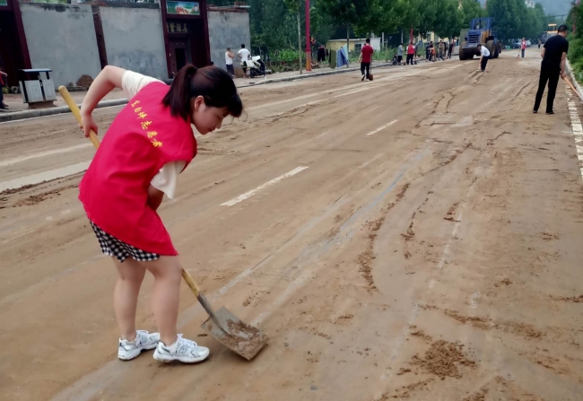 登封市遭受了严重的暴雨灾害,19级英本4班王帅利同学毫不犹豫地加入了白坪居委会抗洪救灾志愿队,主要进行街道淤泥清理工作。她说:“作为一名在校大学生,我们虽然不能像企业家、明星那样给河南捐款捐物,但我们可以尽自己的绵薄之力,为社会、为家园出一份力。在洪水面前,人类是那么地弱小无助,但越是在这种危险的情况下,我们中华儿女就越团结。只要我们团结一心,终将赢得最后的胜利。”