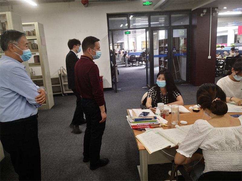 图书馆馆长刘广普详细汇报了图书馆的资源建设、功能布局和读者服务情况,并就图书馆疫情防控和迎接本科教学工作合格评估的具体工作进行了详细说明。