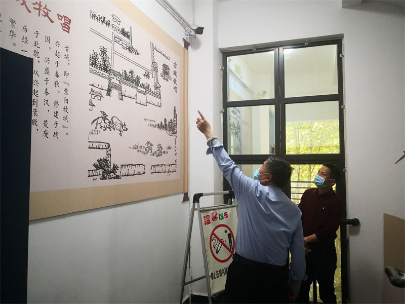 图书馆馆长刘广普向王能民介绍“惠济古韵”文化墙