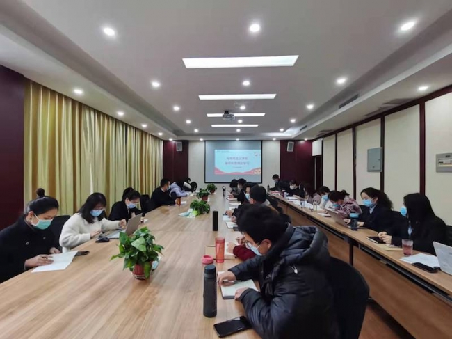 针对部分思政课教师对意识形态工作的极端重要性和形势复杂性的认识、把握还比较浅表化,对社会上暗流涌动的一些错误思潮和观点还缺乏应有的政治鉴别力和敏锐性,马克思主义学院坚持每周二下午进行不少于1小时的理论学习。内容包括习近平总书记系列重要讲话、党的创新理论、思政专题片、政治理论知识问答等,采取个人自学、集体学习、小组研讨、微信公众号推送等多种方式进行。