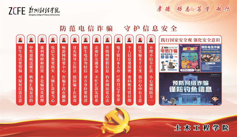 郑州财经学院通过线下LED屏幕滚动播放宣传标语、悬挂宣传条幅、张贴海报等形式,向全校师生广泛开展教育宣传,进一步扩大宣传覆盖面,增强全校师生法治意识、安全防范意识和自我保护能力。与此同时,充分发挥校园媒体平台作用,通过微博、微信、短视频等网络平台开展线上教育宣传,内容结合网络安全法、疫情防控法律法规等普及法律知识。发挥校园新媒联盟联动作用,统筹做好校园法治教育宣传,营造浓厚法治教育宣传氛围。
