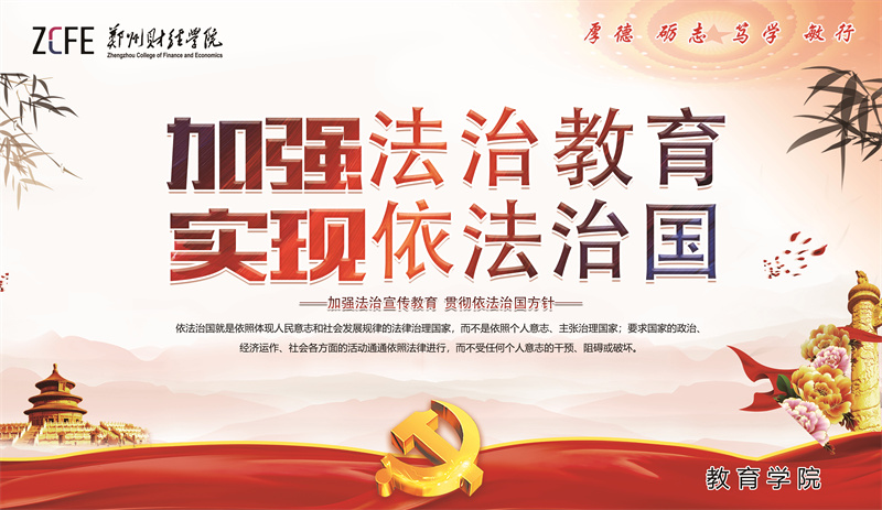 为深入学习贯彻习近平新时代中国特色社会主义思想,落实习近平总书记关于教育的重要论述和习近平法治思想,提升师生法治素养。根据《河南省教育厅 河南省司法厅关于开展全省教育系统法治教育宣传周活动的通知》要求,4月18日以来,郑州财经学院围绕“法在我身边,遵法我带头”主题,多种形式开展法治教育宣传周活动,进一步提高全校师生法治意识,弘扬社会主义法治精神,推动法治校园建设。