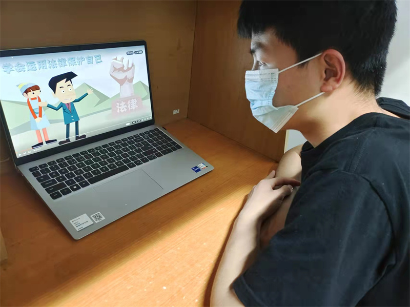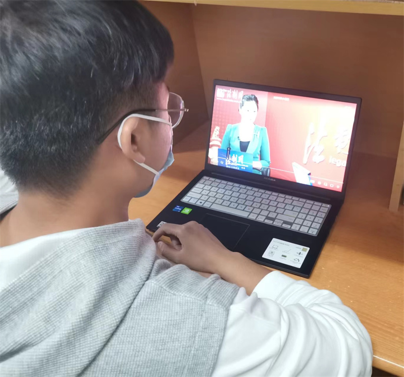 学生在宿舍观看法治教育宣传视频