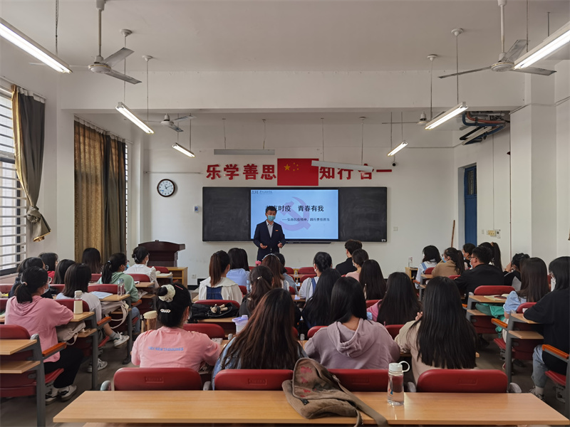 董学力以《共克时疫 青春有我---弘扬抗疫精神 践行责任担当》为主题,围绕全国、河南省、郑州市的疫情蔓延情况,讲授了疫情之下全国人民万众一心、同舟共济的伟大抗疫精神,并与同学们亲切交流,深入了解了疫情期间同学们的学习和生活情况,针对同学们遇到的问题和疑惑耐心进行了解答。