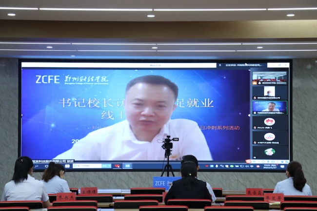 为进一步了解企业用人需求,开拓毕业生就业市场,为毕业生就业、校企合作持续赋能,5月27日上午,我校开展书记校长访企拓岗促就业线上交流会。此次会议邀请到郑州向心力通信技术股份有限公司、河南开合软件技术有限公司、郑州领胜科技有限公司、长城汽车股份有限公司、无锡华润上华科技有限公司、河南恒发科技股份有限公司6家企业参加会议。有关校领导,信息工程学院、智能工程学院党总支书记及相关学院副院长、就业负责人、就业指导服务中心工作人员在德正楼第一学术报告厅与企业洽谈交流。会议由智能工程学院党总支书记孟倩倩主持。