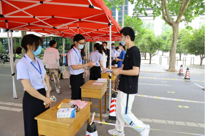为着力做好疫情防控、考试安全两方面工作,考前,以考生为中心,认真做好考生健康排查、核酸检测、考生督返工作,统筹抓好考试组织和疫情防控工作,确保考生一个不落,应考尽考。学校严格按照省市教育主管部门要求将防疫相关工作落到实处,严格疫情防控流程、坚守考试安全底线,校园实行封闭管理,所有进入考点人员均须进行体温检测;准备足量防疫物资并按规定使用和管理。