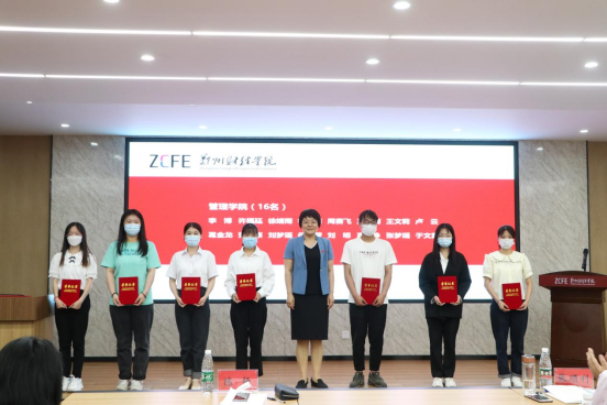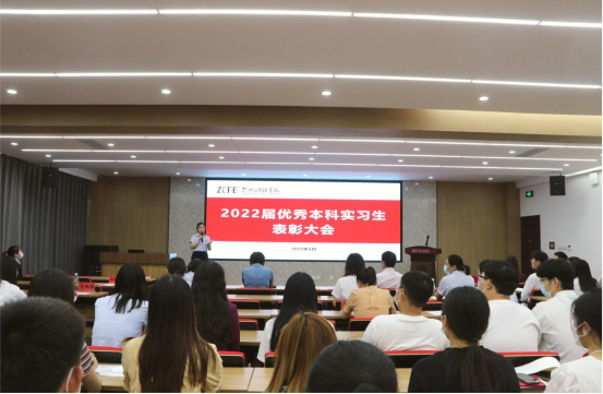 会上,副校长陈静宣读了《郑州财经学院关于表彰2022届优秀本科实习生的决定》,并对获奖实习生表达诚挚的祝贺。