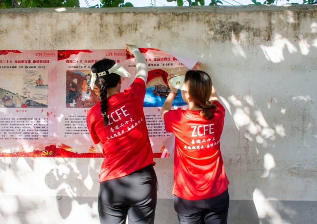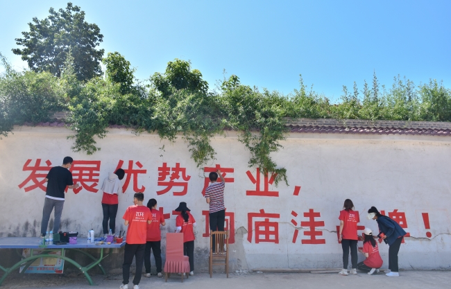 为深入学习宣传贯彻习近平新时代中国特色社会主义思想,推动党史学习教育常态化长效化,积极实施乡村振兴战略,引导郑财学子切实感悟时代发展脉搏、坚定理想信念、锤炼过硬本领,6月27日起,由我校青马秋实班和艺术设计学院学生共同组建的“乡村筑梦家志愿服务”团队再次出发,奔赴河南省三门峡市陕州区庙洼村开展以“助力乡村振兴”为主题的暑期三下乡社会实践志愿服务活动。此次“三下乡”社会实践活动以“为乡村振兴铸魂赋能”为目标,通过集中示范、志愿服务、宣传展示等形式,深入开展中国精神宣讲、关爱幼老、彩绘文化墙等活动。