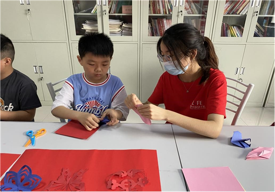 接着,实践团深入开封市大兴街道办事处,开展了“流光彩艺,剪纸光影”活动。此次活动特邀金融学院“蒲公英”艺术支教团队联合举办,很多小朋友加入其中,在剪纸中感受中华传统文化的博大精深,对中华传统文化有了更深层次的认知。