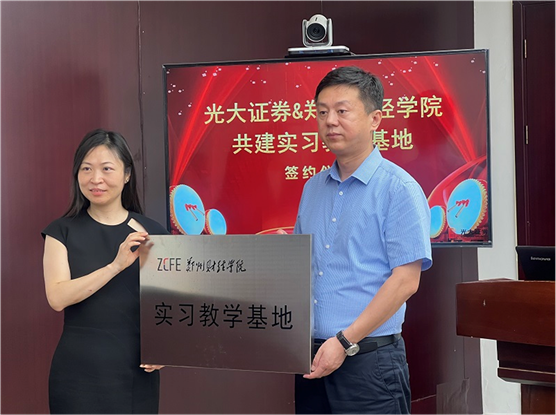 7月27日,我校与光大证券共建“实习教学基地”签约仪式举行。我校2022届金融学专业优秀毕业生杨涛汇报了自己在光大证券的实习和就业情况,表达了对母校培养的感激之情。光大证券金水营业部总经理王颖颖与我校党委副书记董学力分别介绍了双方单位情况,并对今后的实习就业合作达成了一致意见。同时双方还举行了实习就业协议签约仪式和实习教学基地授牌仪式。