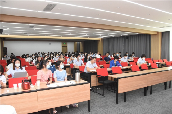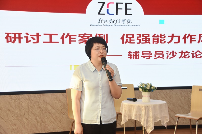 7月29日下午,由学生工作部主办,会计学院、文化与传媒学院、统计与大数据学院共同承办的“研讨工作案例,促强能力作风”辅导员沙龙活动在德正楼第一学术报告厅成功举办。教育部高校思想政治工作队伍培训研修中心(郑州大学)办公室副主任聂娜,郑州财经学院副校长陈静,学工部、学生处相关负责人,各二级学院党总支副书记及全体辅导员参加本次活动。