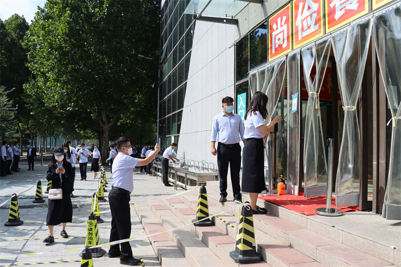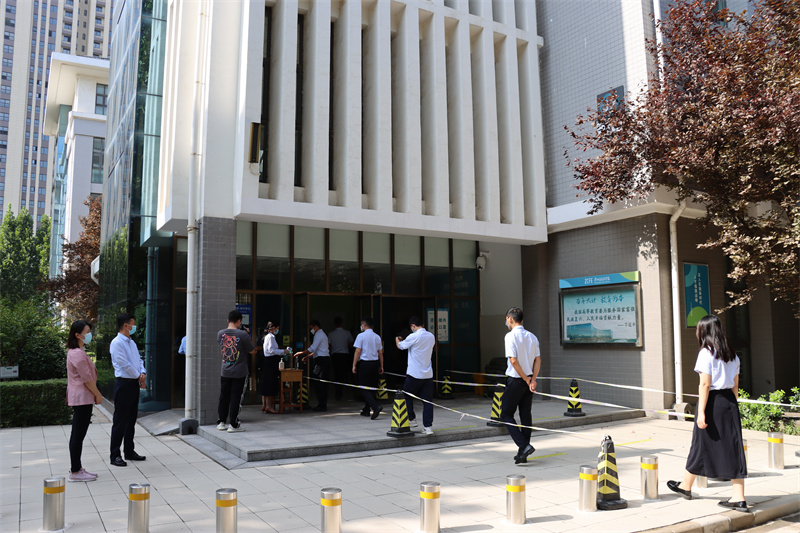 根据秋季返校开学疫情防控演练安排,此次演练在学校南门、2号教学楼、学生餐厅、15号学生宿舍楼四个重点场所进行。各演练场所分别对模拟发热或作为确诊病例密切接触者两种情况进行了实战演练。演练前,各场所疫情防控工作人员周密部署,细化流程,根据可能遇到的各类情况制定演练脚本。演练现场,根据教职工模拟情况,迅速启动疫情防控应急预案,学校疫情防控工作领导小组、疫情防控工作专班、校医务室等多部门有效联动,密切配合,参演教师按照应急演练路线和要求,在较短的时间内高效、熟练地演示了各场景下的疫情防控要求和应急处置流程。