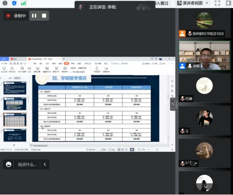 9月9日,郑州轻工业大学经济与管理学院彭青秀教授对学院现有硕士学位授权点进行了介绍,并详细分析了近五年来招生人数、录取情况等,尤其对录取的民办高校学生情况进行了分析,鼓励我校学生认真备考。
