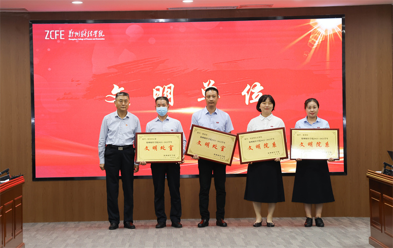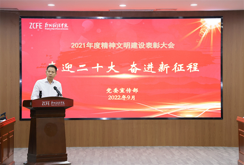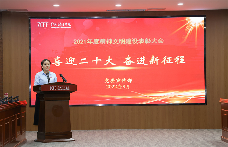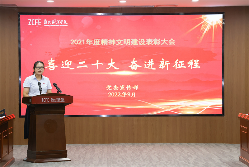 监事会主席李庆阳宣读了《郑州财经学院关于表彰2021-2022学年精神文明创建活动先进集体和先进个人的决定》。