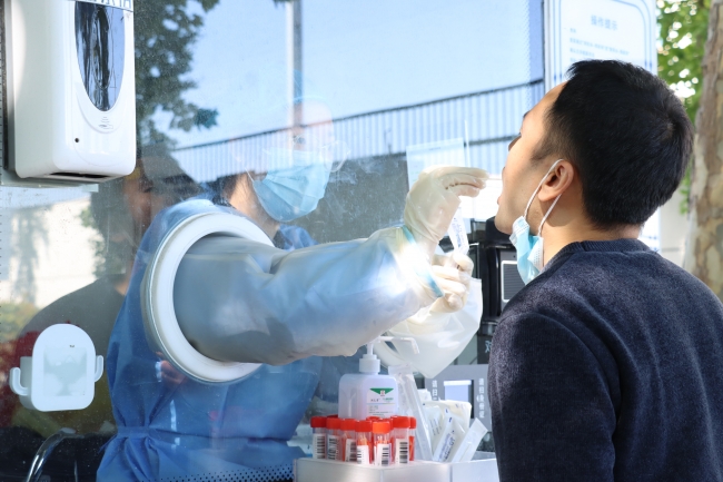 青年志愿者服务中心叶笑笑同学说,“在全员核酸检测现场,我亲眼目睹了医护人员工作的不容易。他们一站就是几小时,累得胳膊都肿了,汗水顺着防护服不停往下流却不能擦。因为擦汗需要消毒后脱掉防护服,再消毒重新穿一套新的防护服。为了节约时间,很多医护人员选择不喝水、不擦汗,直至工作全部结束。”
