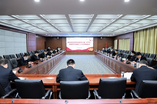 10月25日下午,郑州财经学院党委中心组学习(扩大)会议在德正楼第二会议室召开,专题学习中国共产党第二十次全国代表大会精神。校领导、党总支书记参加会议,会议由校党委书记李国强主持。