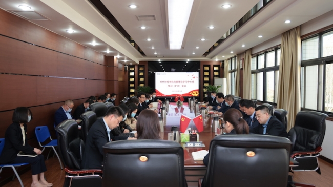 3月14日下午,郑州财经学院党委理论学习中心组学习(扩大)会议在德正楼第一会议室召开,专题学习传达2023年全国两会精神。校党委委员、党总支书记参加会议,党委副书记董学力主持会议。