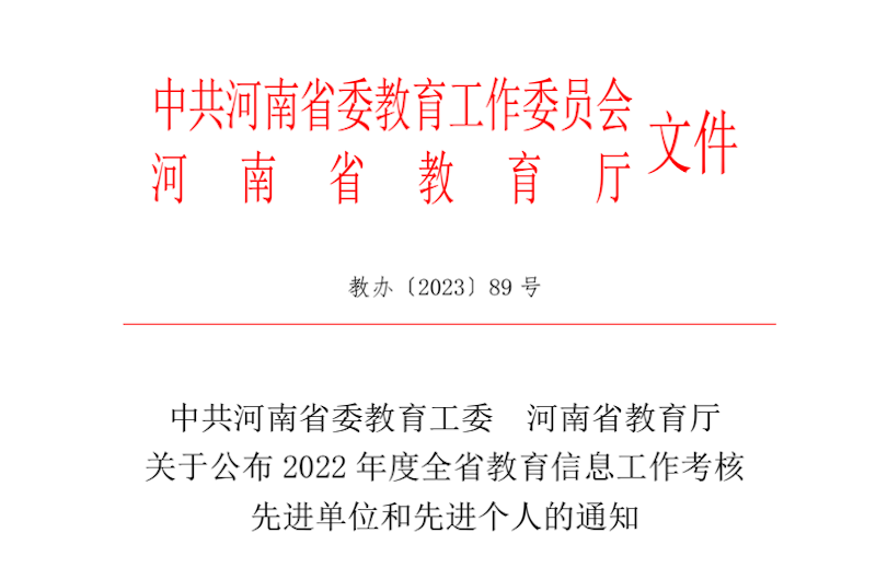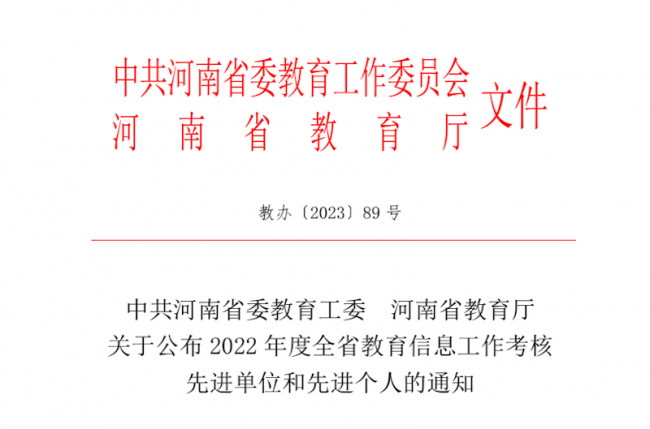 4月5日,省委教育工委、省教育厅下发文件,我校在2022年度全省教育信息工作考核中被评为先进单位。