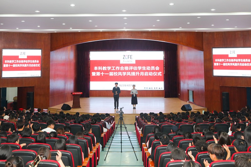 4月19日下午,我校在图书馆学术报告厅召开本科教学工作合格评估学生动员会暨第十一届校风学风提升月启动仪式。我校在校校领导出席会议,相关职能部门负责人,各二级学院党总支副书记、团总支书记、学工办主任、辅导员代表、学生干部代表参加会议。